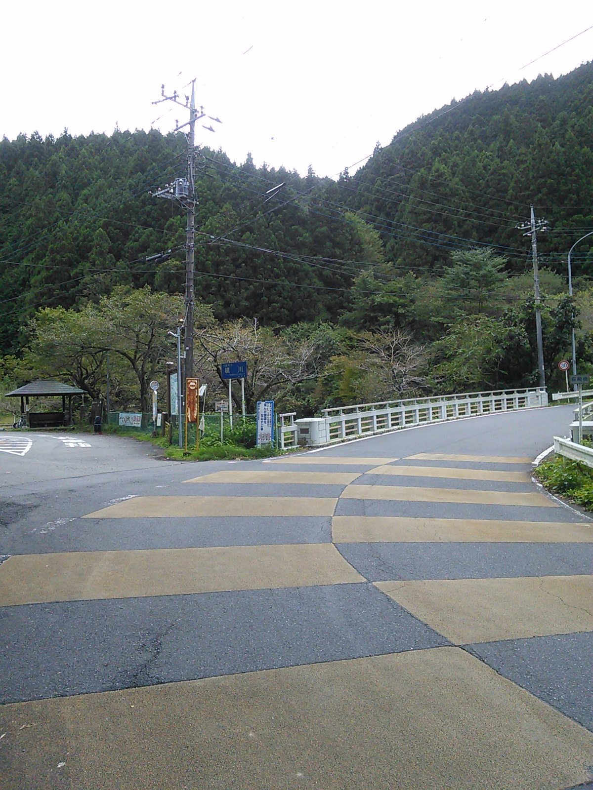 槻川沿いにゆるゆる登っていくと、落合の交叉点が見えてきました。