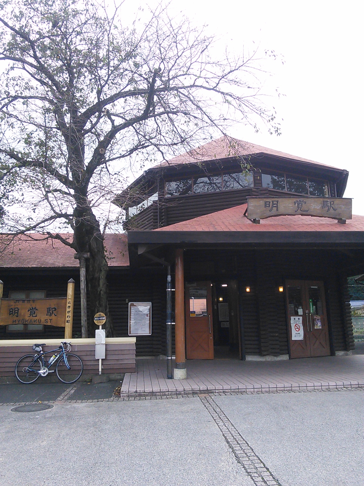 白石峠から下りきると、ときがわベースの前に戻ってきます。直進して明覚駅に行ってみます。