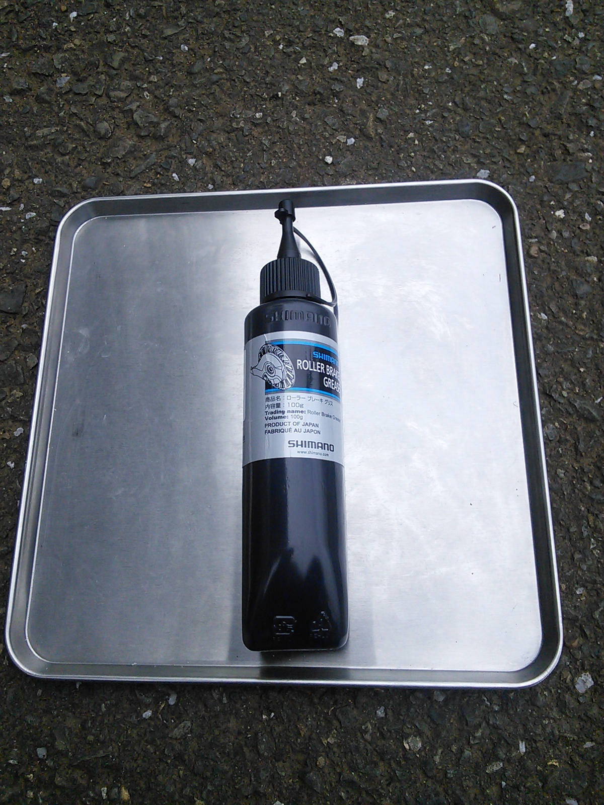 早めにグリスを注した方がいいと思い、メーカーの指定通りシマノのローラーブレーキ用グリスを用意します。