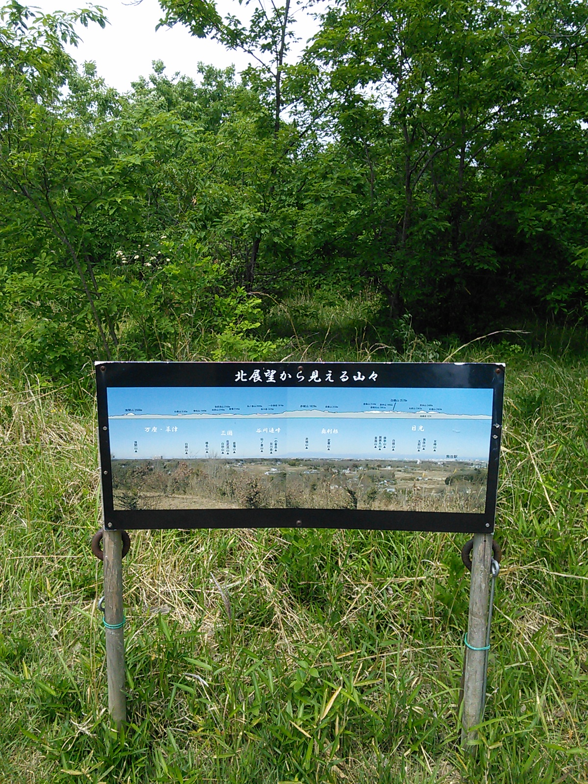 赤城山、榛名山、谷川岳、武尊山といった群馬方面の山々が望めたようですが、今は樹木が生い茂って展望なし。