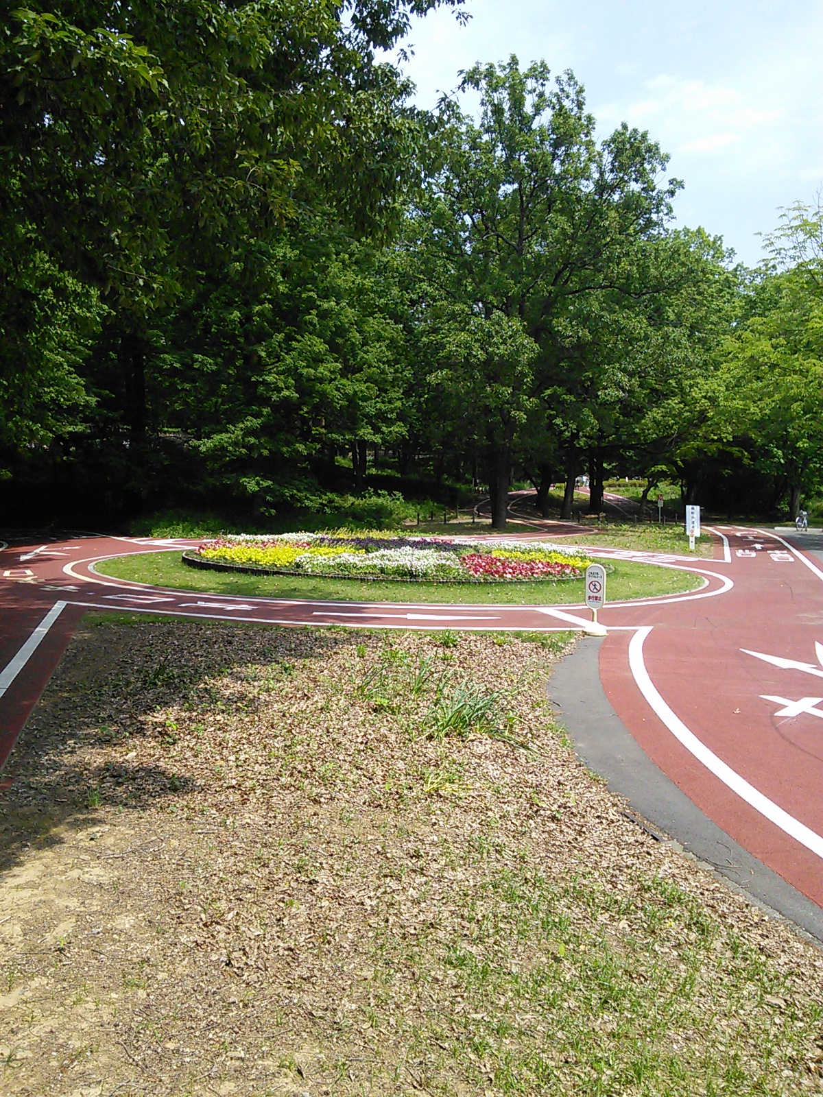 森林公園内のサイクリングコースは、歩行者進入禁止の自転車専用道路です。一部に対面通行のところがありますが、原則一方通行。