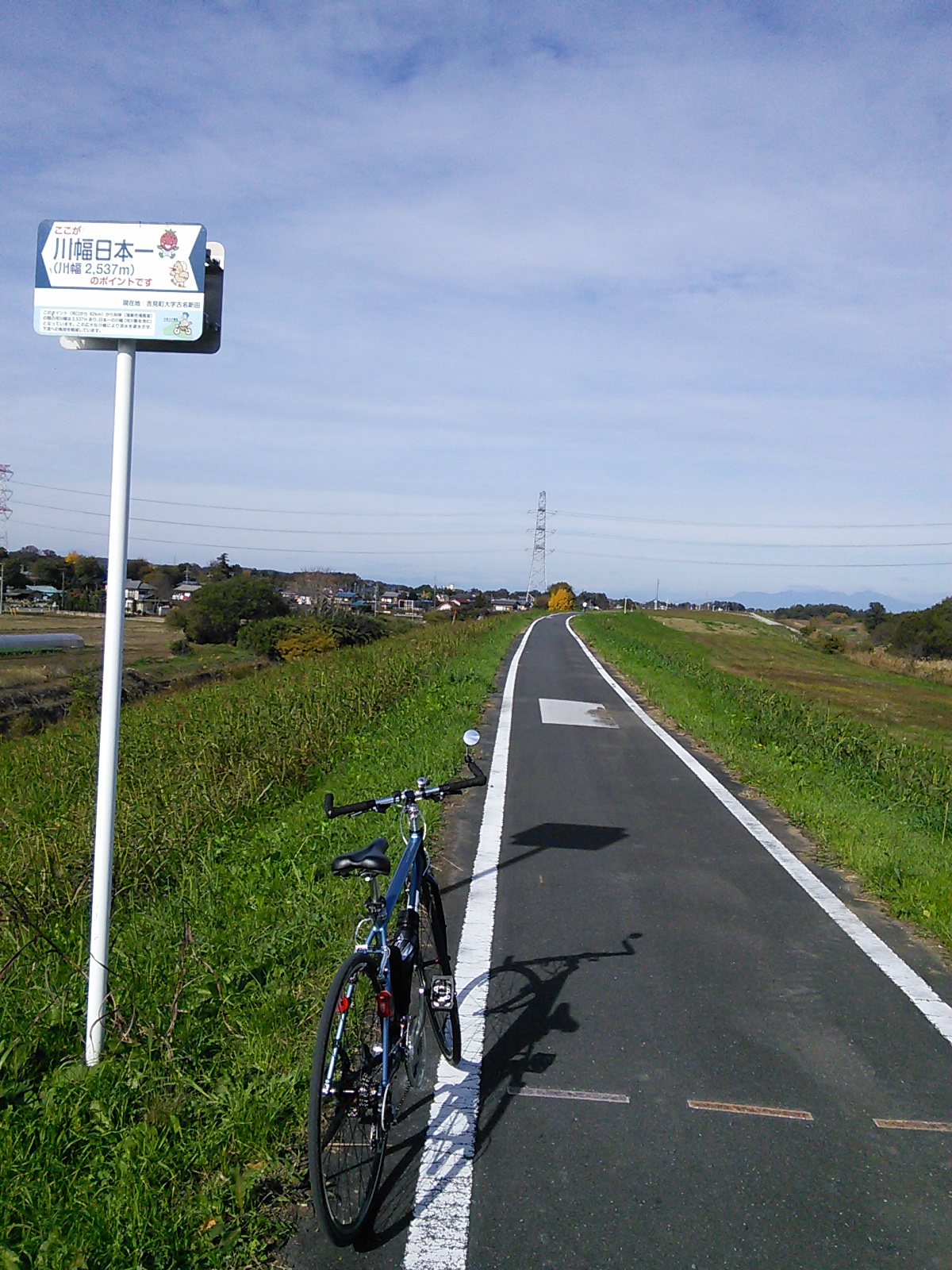 荒川自転車道の途中にある川幅日本一の地点。